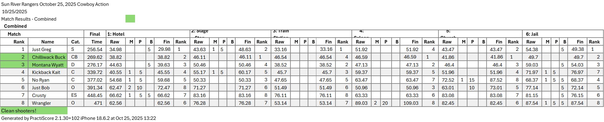 Shoot Results 2025